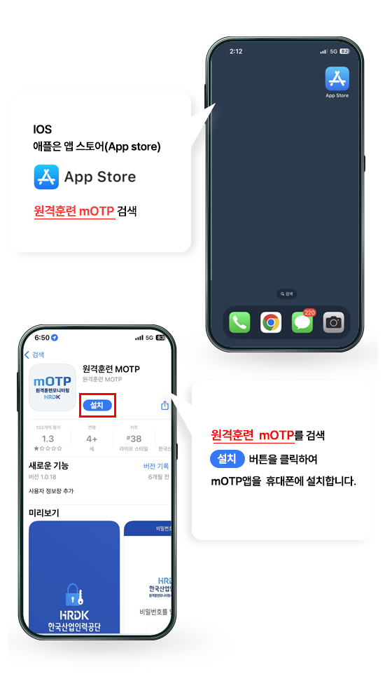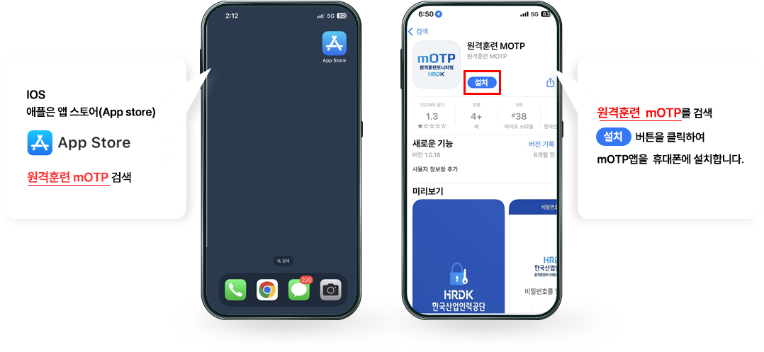 STEP 03 원격훈련 mOTP앱에서 생성된 OPT번호(6자리)를 인증화면에 입력합니다.